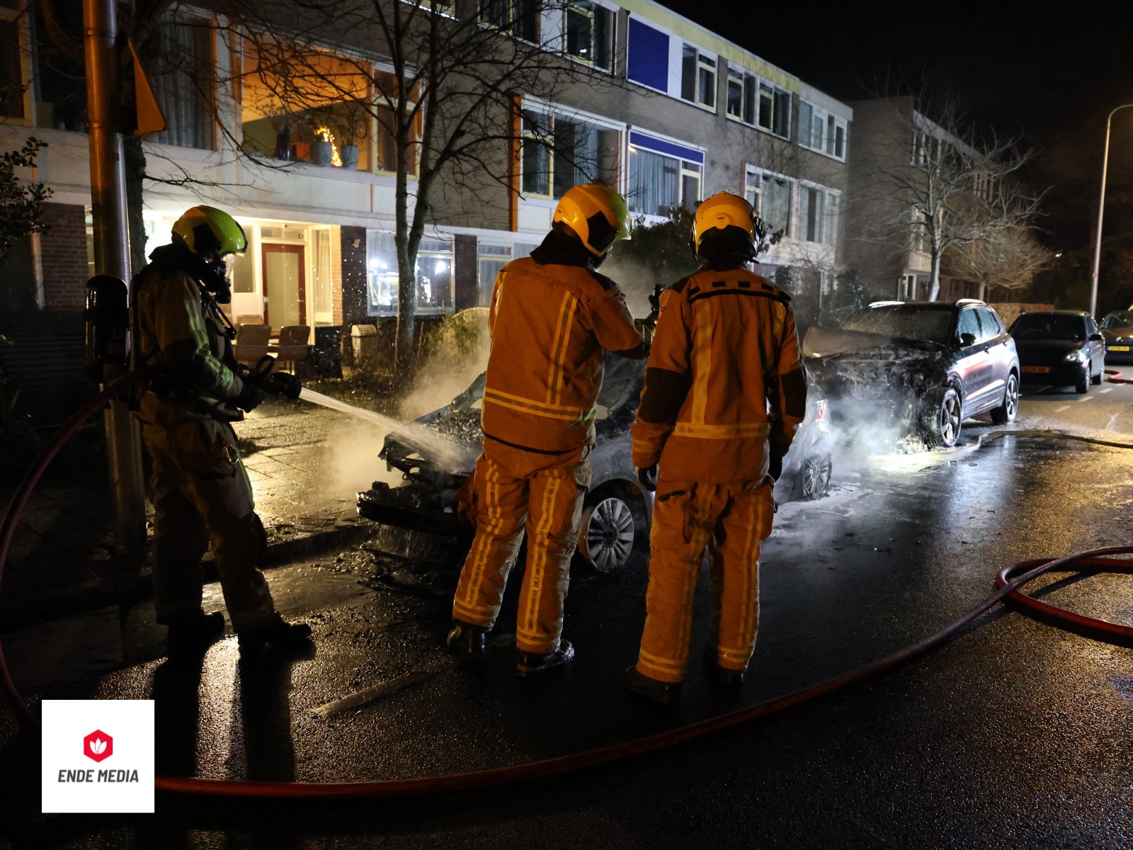 De melding kwam even voor 05.00 uur binnen bij de hulpdiensten. Een geparkeerde personenauto stond in lichterlaaie. De hitteontwikkeling was dermate intens dat een daarachter geparkeerd voertuig werd aangestraald en eveneens vlam vatte.